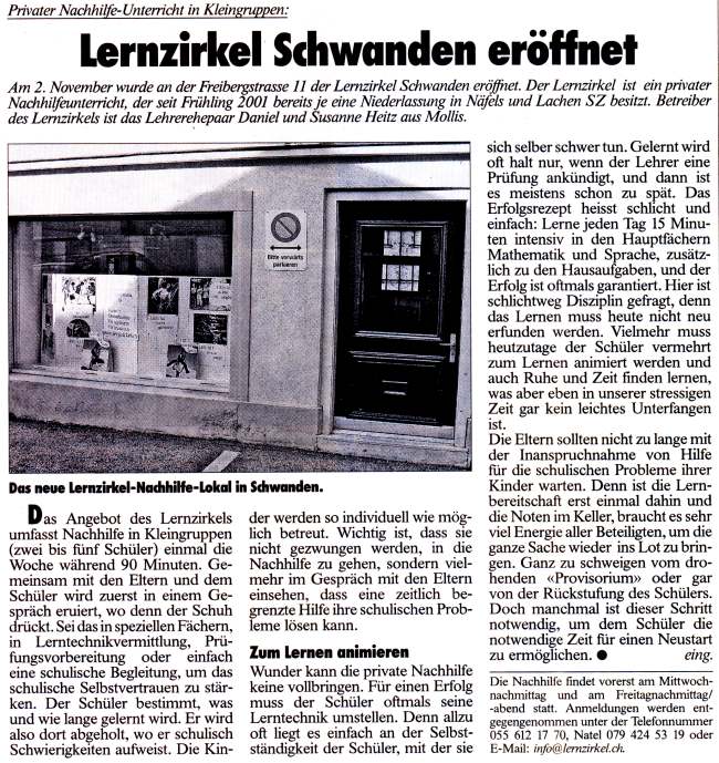 8852 Lachen Tel. 055 442 00 48 Mobile 079 424 53 19 |  | Lernzirkel Näfels Rösslistrasse 1 8752 Näfels GL